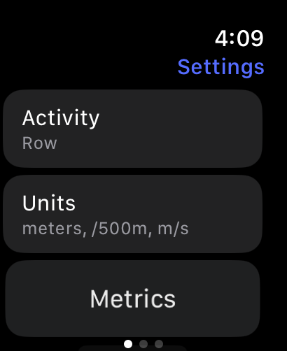 Due to the limited size of the watch display, only a subset of the app settings are provided there. When you run CrewNerd on the watch alone, you have access to the most critical app settings, and you can select which data fields are shown during your workout. In “phone + watch” mode, you select the watch data fields on the iPhone settings page.