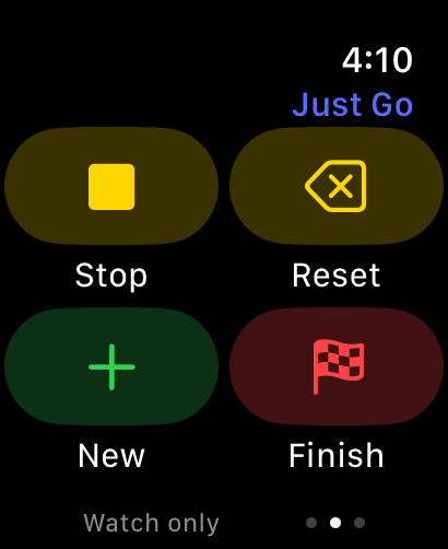 - When you finish your practice (using either mode), be sure to go to the controls page and press the “Finish” button. This ensures that your last workout is saved, and tells the Apple Watch to stop monitoring your movement, heart rate, and location.